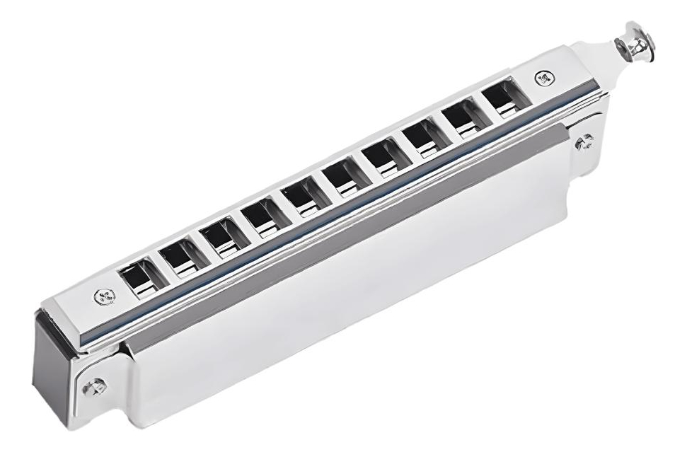 Fabricada en metal, esta armónica ofrece un sonido claro y potente, ideal para interpretar diferentes géneros musicales. Su modelo 1040 destaca por su diseño elegante y sofisticado, convirtiéndola en una pieza única que no puede faltar en la colección de cualquier músico.