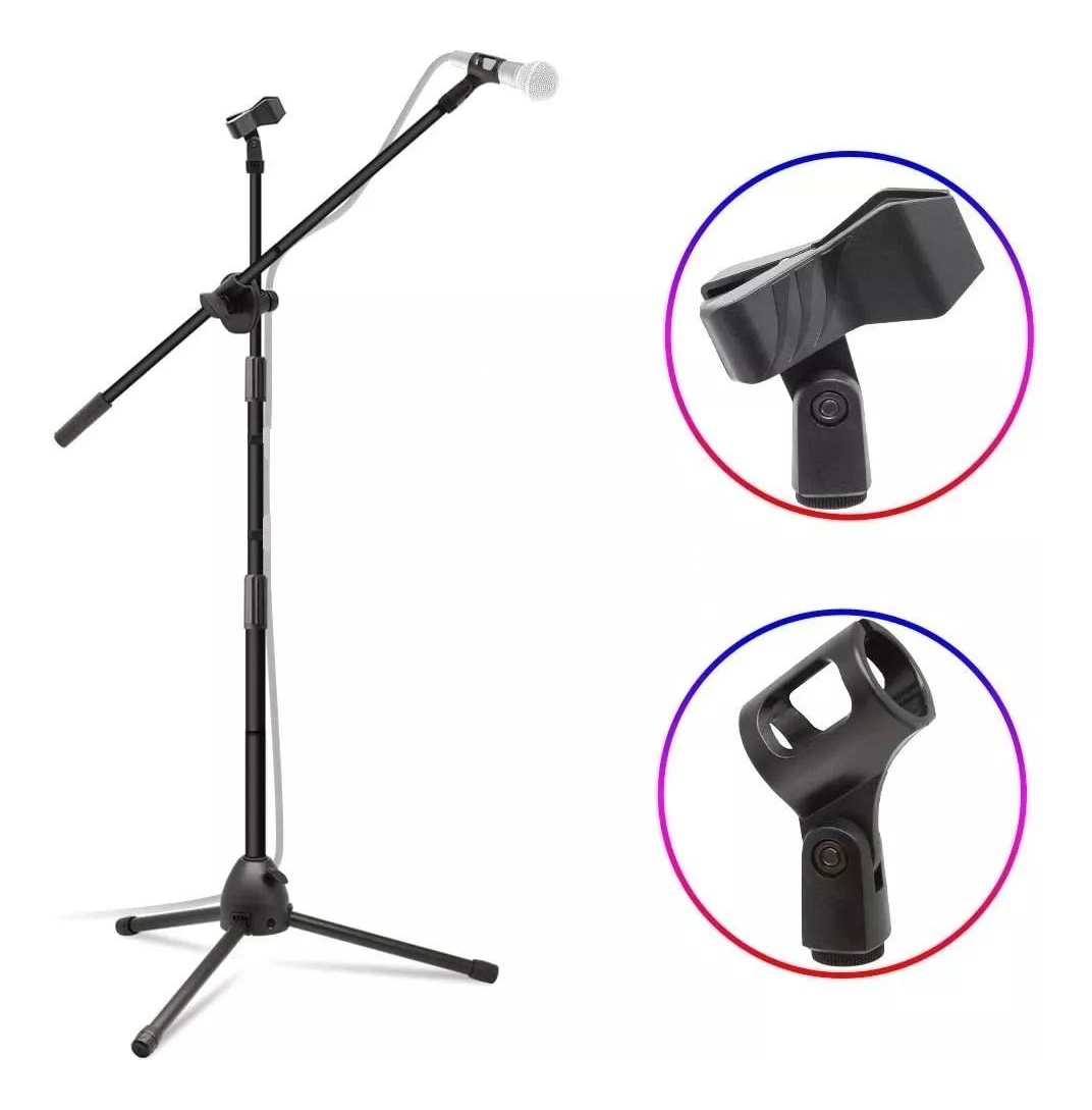 El modelo doble te permite colocar dos micrófonos al mismo tiempo, lo que lo hace perfecto para grabaciones o presentaciones en vivo. Su base tipo trípode asegura un soporte firme y seguro en cualquier superficie. Además, su ángulo de rotación te permite ajustar la posición de los micrófonos según tus preferencias.