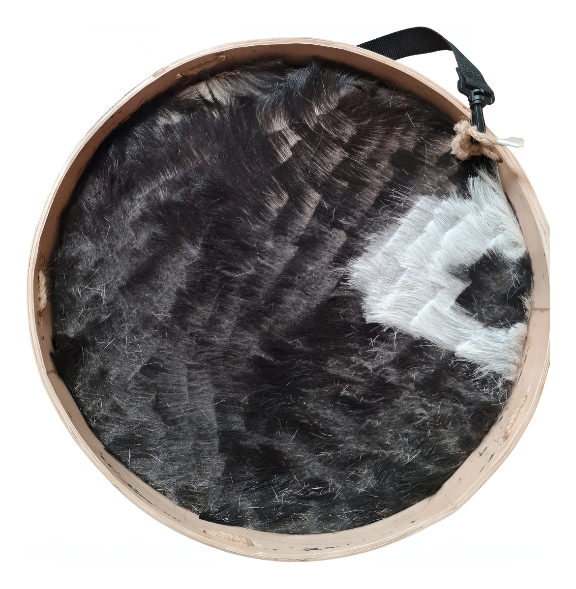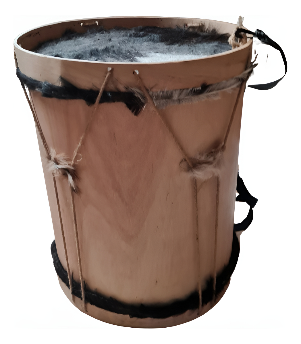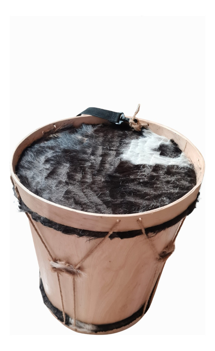Bombo legüero artesanal construido en madera dura con cueros naturales de alta resistencia. Incluye aros de madera reforzada y tientos de cuero para un tensado firme y estable. Ofrece un sonido grave, profundo y equilibrado, ideal para uso profesional o estudiantil. Acabado rústico y estructura liviana para fácil transporte.