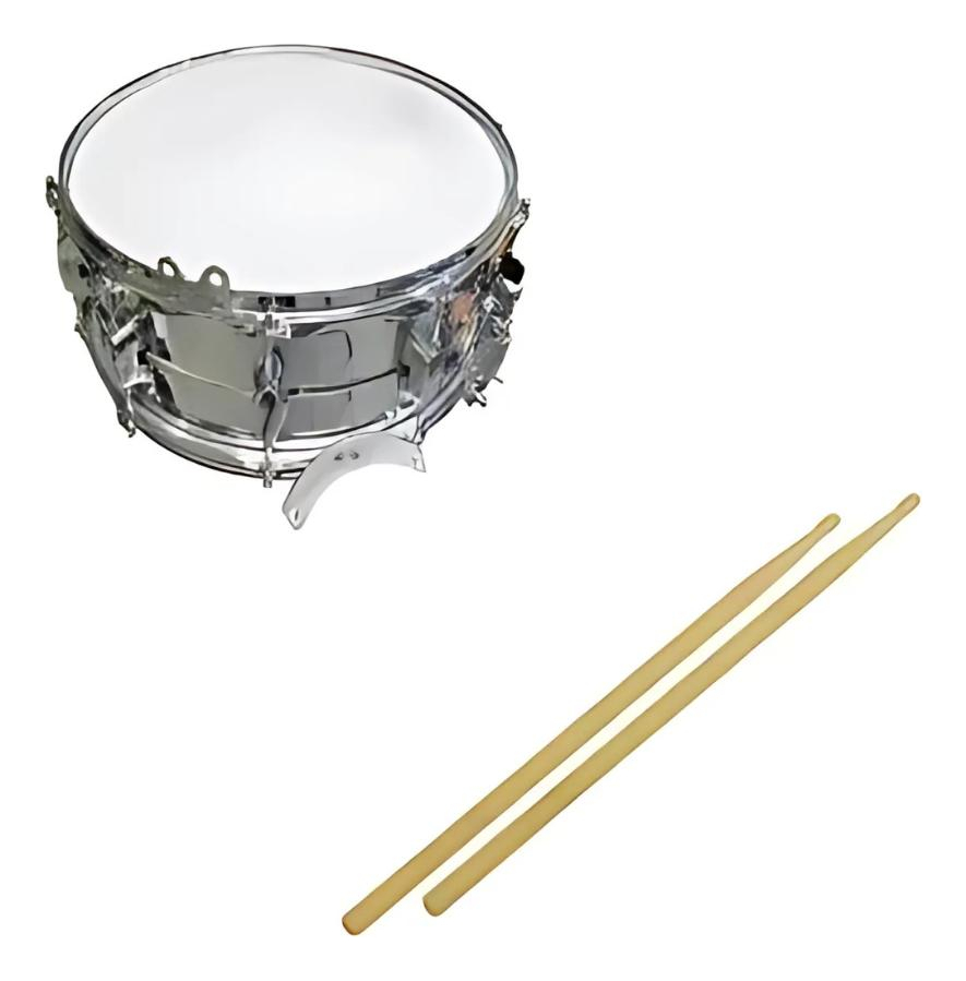Caja de banda Escolar 14´´ x 6″ Strauss. Caracteristicas: Posee Piernera. Tiene soporte para terciado el cual se encuentra en la parte superior. Posee bordona de 20 hilos y se encuentra en la parte inferior. Tiene tira de bordona. La cual viene con afinadores los cuales son 6. Sus medidas son 14´´x 6´´. Parches de golpe color blanco en la parte superior y en la parte inferior color transparente. Baquetas de madera.