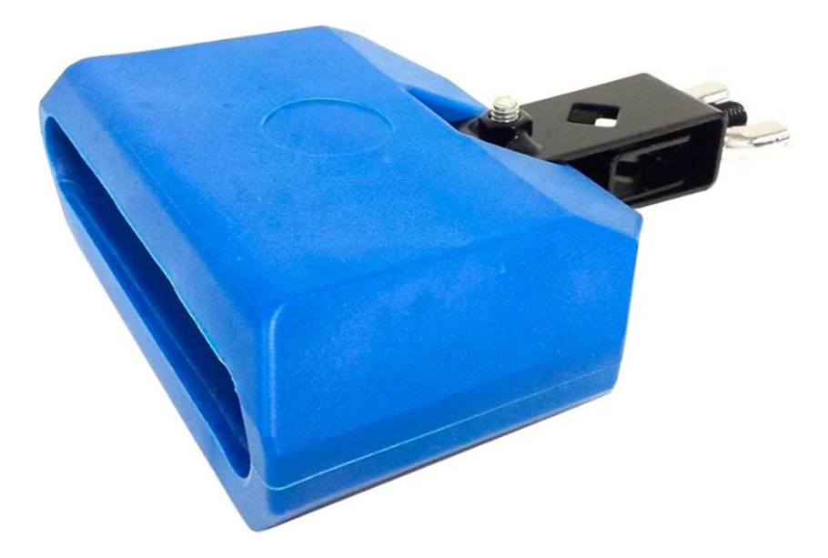 Cencerro azul de plastico. Marca RMX , medidas 13 x 8 cm