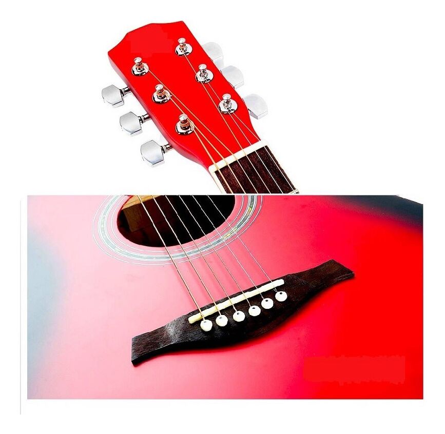 Esta guitarra acústica cutaway de 41 pulgadas en color rojo es ideal para músicos de todos los niveles. Con su forma clásica y corte en el cuerpo, ofrece comodidad y facilidad de acceso a los trastes superiores. El acabado del cuerpo en color rojo le da un aspecto llamativo y moderno, perfecto para destacar en el escenario o en casa. La marca genérica garantiza calidad y durabilidad en cada interpretación.