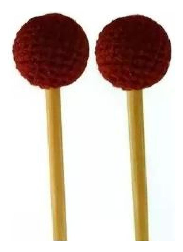 Mazos para percusión fabricado en madera con malletes de lana en la punta. Es necesario considerar los materiales de fabricación para determinar de mejor forma para qué tipo de instrumento sirve más