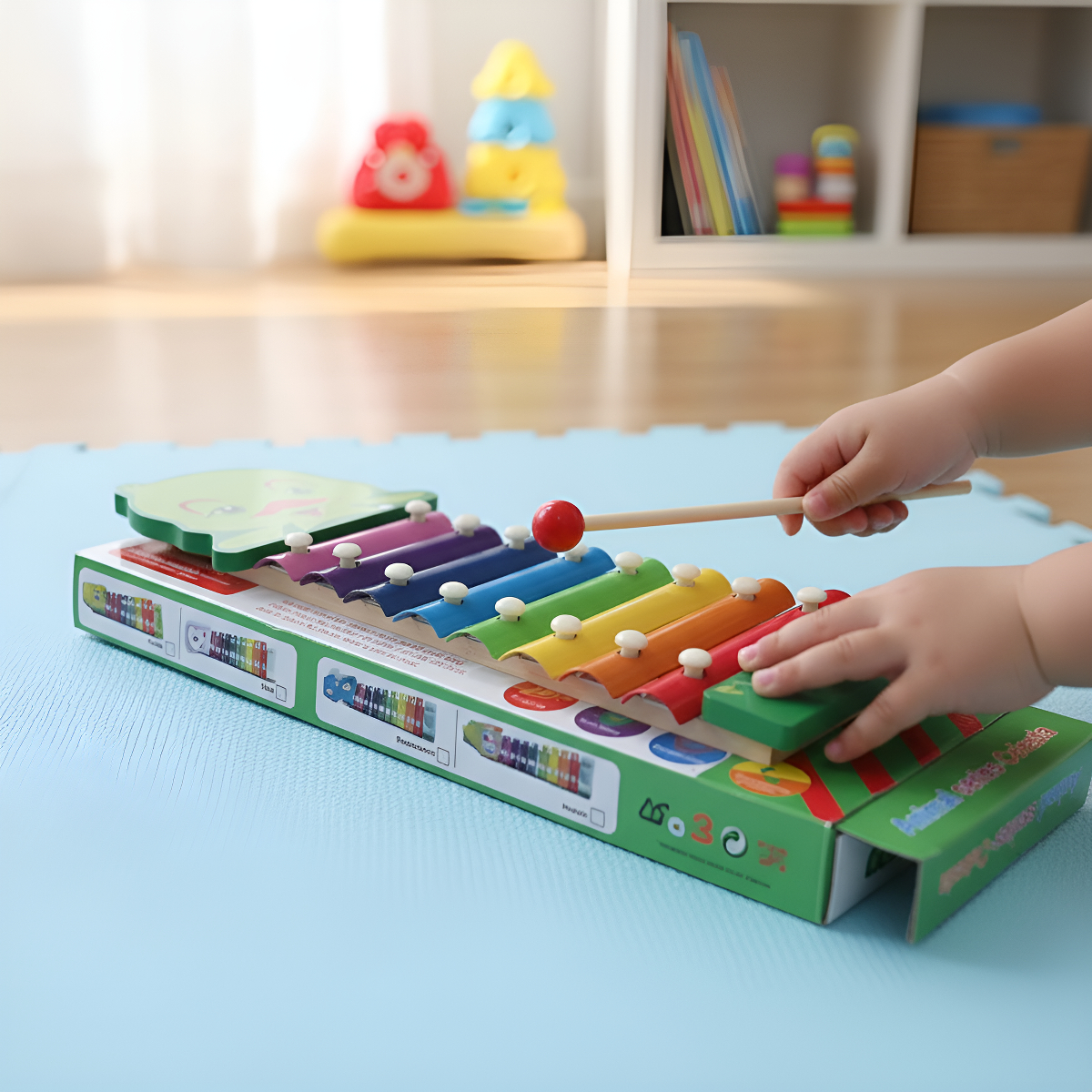 Con ocho notas musicales diferentes, este Metalófono ayuda a los niños a desarrollar su coordinación mano-ojo, habilidades motoras y comprensión del ritmo musical de una manera lúdica y atractiva. Es un instrumento ideal para fomentar la creatividad y el amor por la música desde una edad temprana.