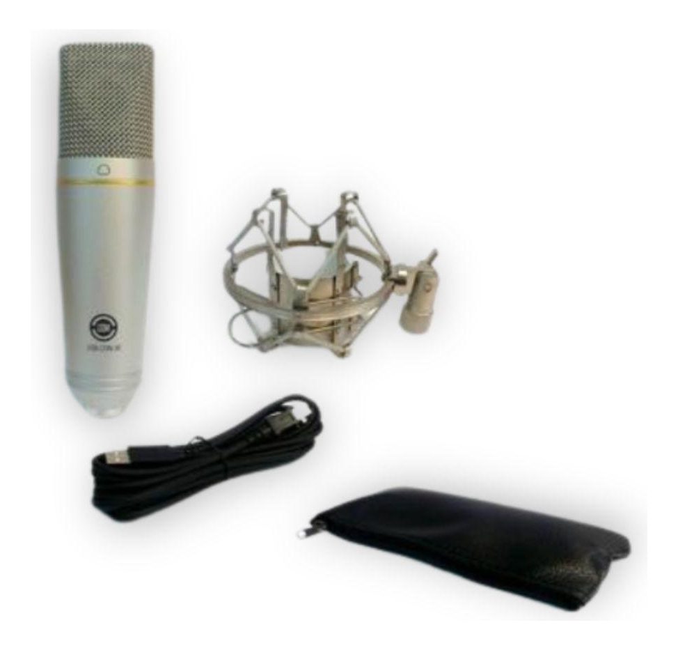 Para uso en PC o Mac, este micrófono de condensador de estudio con conectividad USB se conecta directamente a cualquier computadora con puerto USB. Con una construcción sólida y duradera, ofrece una respuesta de frecuencia plana. Incluye cable USB, patrón polar hiper cardioide, sensibilidad de -33 dB/Pa, y un rango de frecuencia de 20 Hz a 18 kHz. Accesorios: cable USB y araña shock mount.