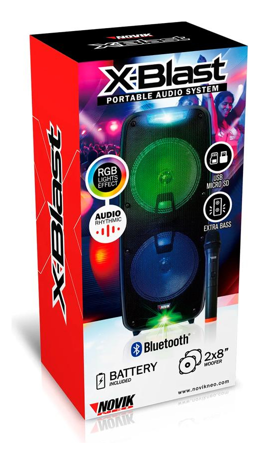 El Parlante Novik Xblast Portátil con Batería USB es el compañero perfecto para llevar la música a todas partes. Con su diseño portátil y batería recargable, podrás disfrutar de tu música favorita en cualquier lugar sin preocuparte por cables.