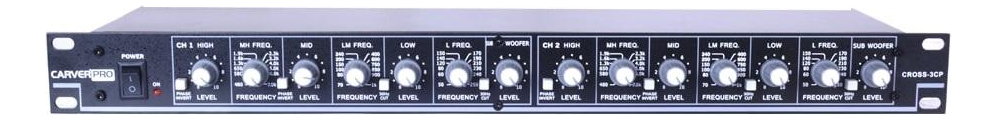 CROSSOVER 3 VIAS CON SUBWOOFER DE SALIDA, ÉSTE CROSSOVER ULTRA CONFIABLE DE ALTA CALIDAD, CON FRECUENCIA DE RESPUESTA 20 hz-25khz 1DB, COLOR NEGRO. MOD.CROSS-3CP CARVERPRO.